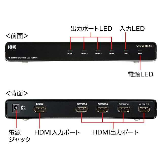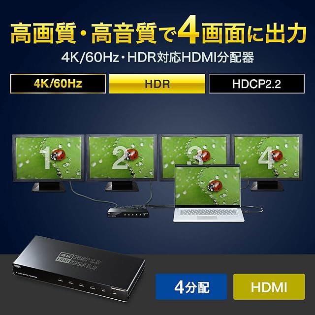 商品名:サンワサプライ HDMI分配器(4分配) 4K/60Hz・HDR対応 VGA-HDRSP4