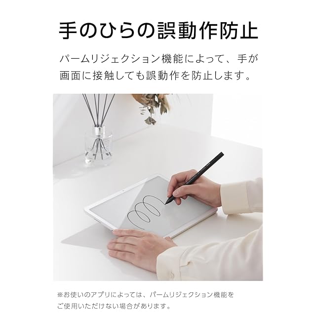 ペン先が約1.3mmと極細なので繊細な描き込みができ、筆記具で文字やイラスト作成をする感覚で操作可能です。