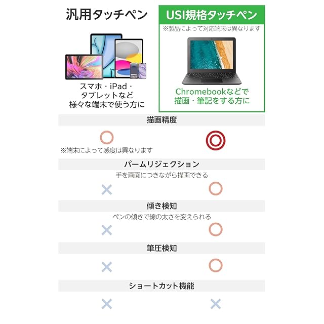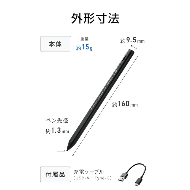 USI(Universal Stylus Initiative)規格に対応したアクティブタッチペンです。