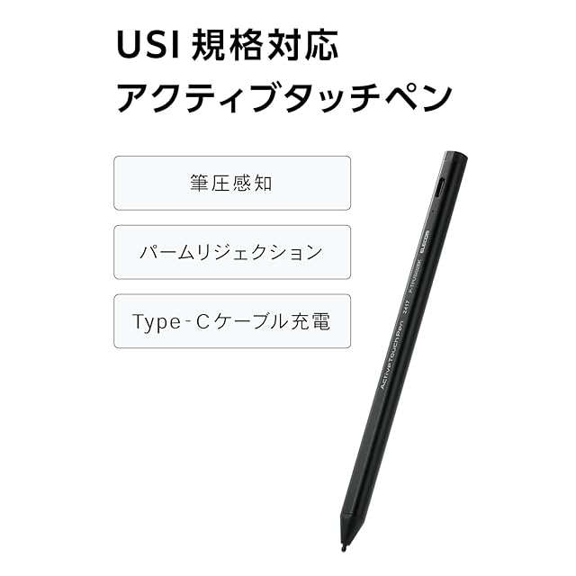 商品名:エレコム タッチペン スタイラスペン USI規格対応 【 Google Pixel Tablet 】 充電式 極細 タイプc充電 パームリジェクション オートスリープ 45時間連続使用可能 軽量 ペアリング不要 ブラック P-TPUSI02BK