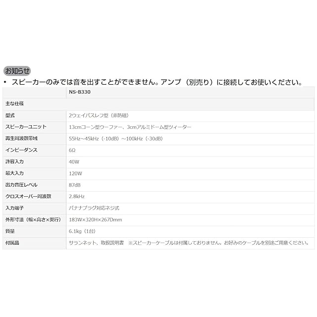 商品名:ヤマハ ブックシェルフスピーカー(2台1組) NS-B330(B) ブラック