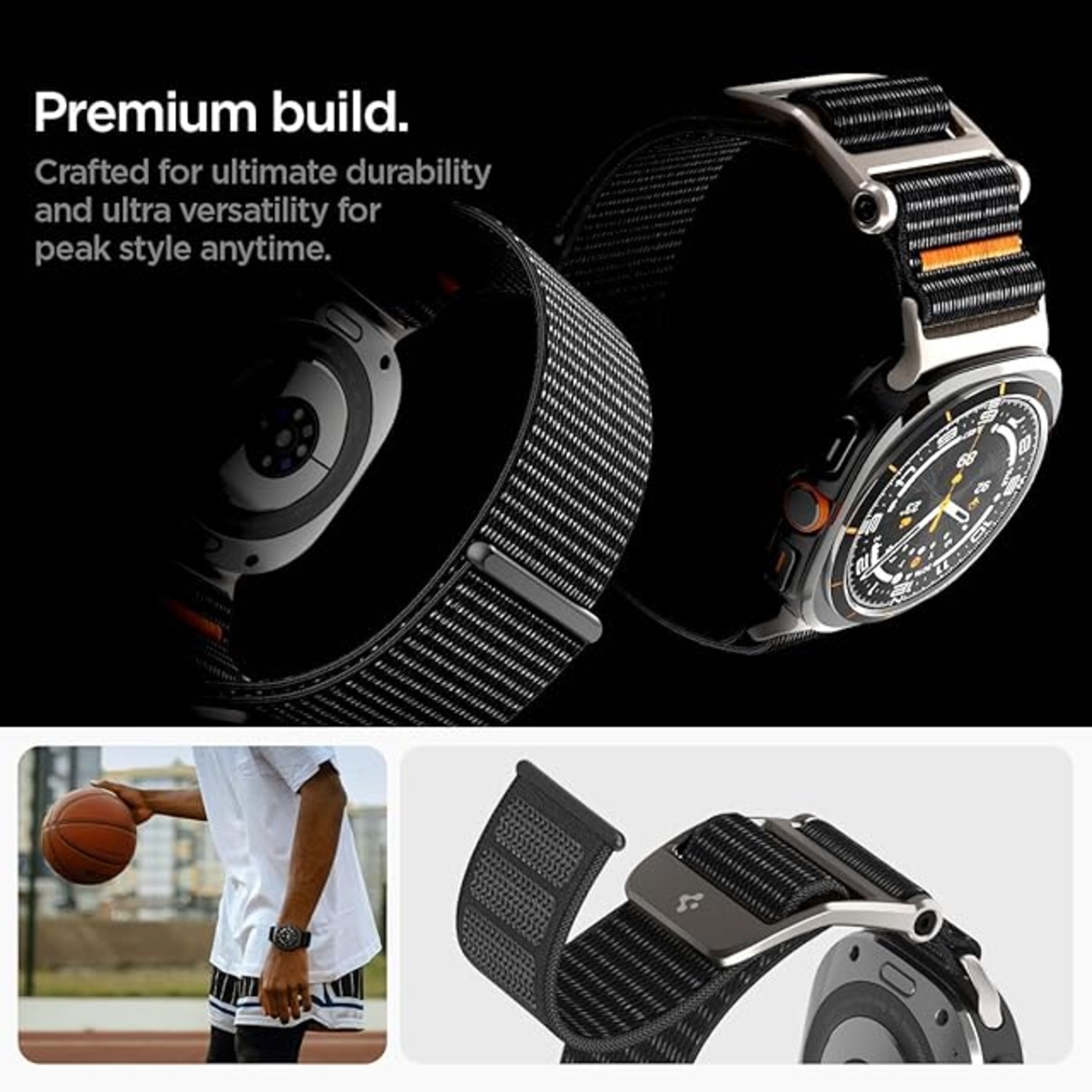 Spigen DuraPro Flex Samsung Galaxy Watch Ultraバンド 47mm 調節可能なソロループバンドストラップ (2024) 用 - ブラック | LIS MART