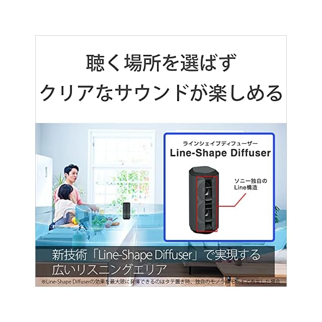 広いリスニングエリア新技術「Line-Shape Diffuser」搭載により広いリスニングエリアを実現スピーカーから近くでも離れても均一な音質で音を楽しめる