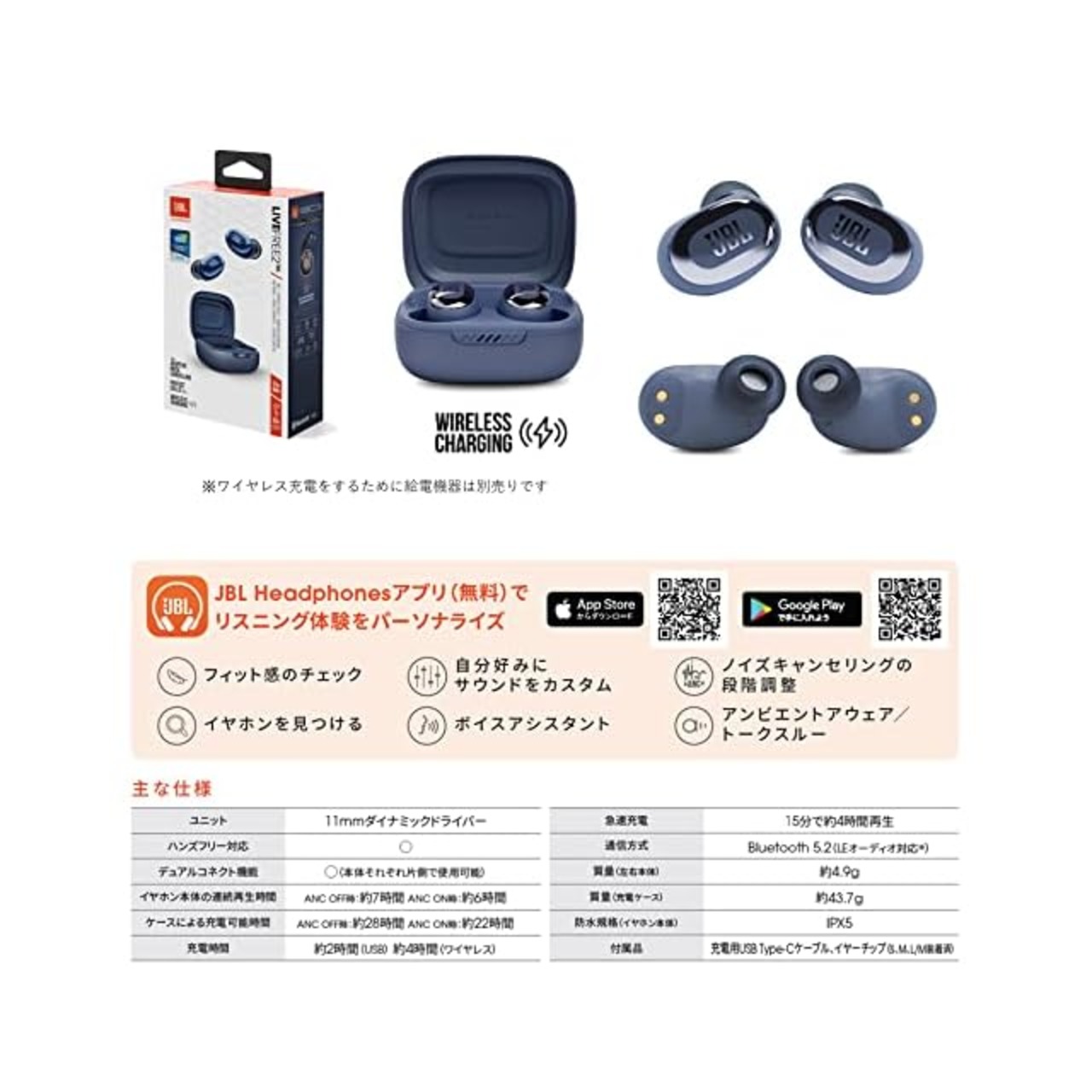 商品名:JBL LIVE FREE 2 ワイヤレスイヤホン bluetooth マルチポイント/ハイブリッド ノイズキャンセリング/IPX5/ワイヤレス充電対応/ブルー/ JBLLIVEFREE2TWSBLU