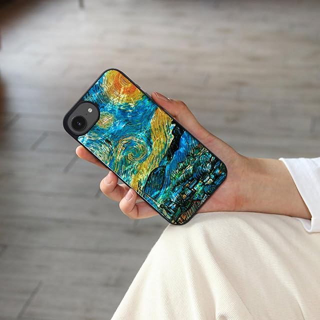 ikins iPhone 16e 用 ケース 天然貝 星月夜 [ パール 光沢 表面コーティング加工 着脱しやすい ストラップホール付き ワイヤレス充電 ] ゴッホ 名画シリーズ アイフォン 保護カバー I27646i16E 【国内正規品】 | LIS MART