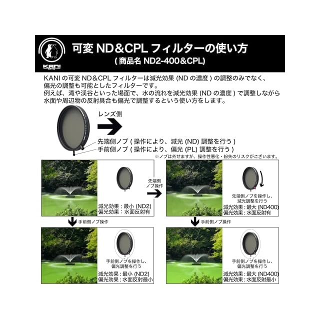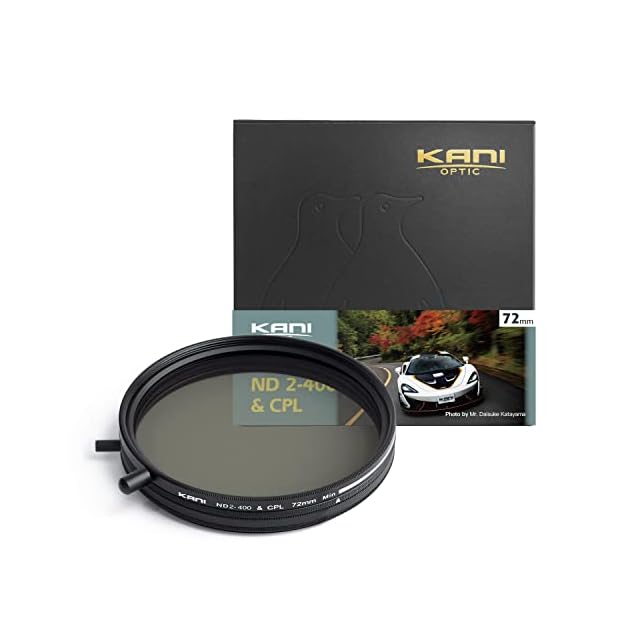 KANI 72mm 可変NDフィルター ND2-400+CPL 減光効果最大8 2/3絞り分 多用途フィルター 着脱式調整用ノブ付 高濃度時X状ムラ抑制 低反射 撥水 撥油 防汚 ナノコーティング 812766 | LIS MART