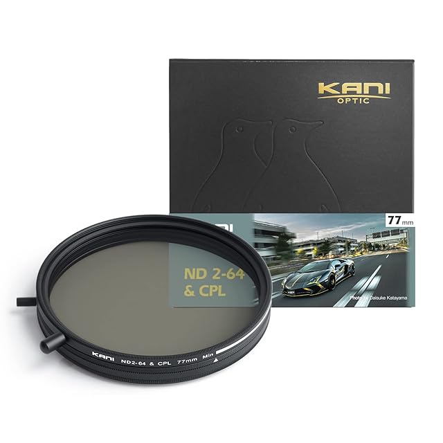 KANI 77mm 可変NDフィルター ND2-64+CPL 減光効果最大6絞り分 多用途フィルター 着脱式調整用ノブ付 高濃度時X状ムラ抑制 低反射 撥水 撥油 防汚 ナノコーティング 812674 | LIS MART