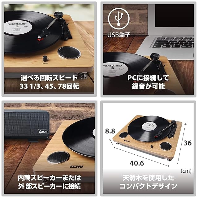 商品名:ION Audioレコードプレーヤー USB ヘッドホン端子 スピーカー内蔵 レコードの音をUSB接続でPCに録音可能 木目 アイオン Archive LP