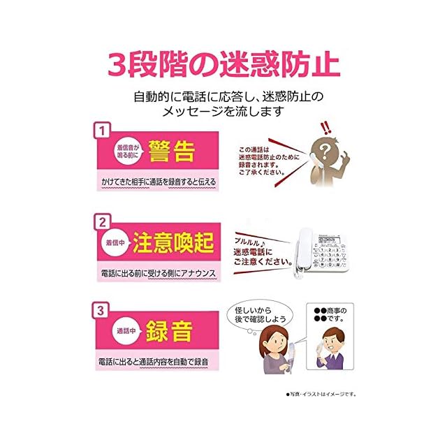 呼出音が鳴る前に相手に警告メッセージを流す「迷惑防止」機能搭載