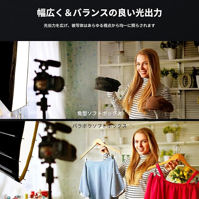 【16角放物線ソフトボックス】この深く放物線状のソフトボックスは滑らかで均一な銀色の内部コーティングがあり、中立演色評価数 (CRI) と温度を維持しながら出力を広げて拡散させて、光をより均一かつ広く広げて撮影効果を改善します。タッチファスナーを介して2層のディフューザーを取り付けて、強いまぶしさを和らげ、不要な影をなくすことができます。
