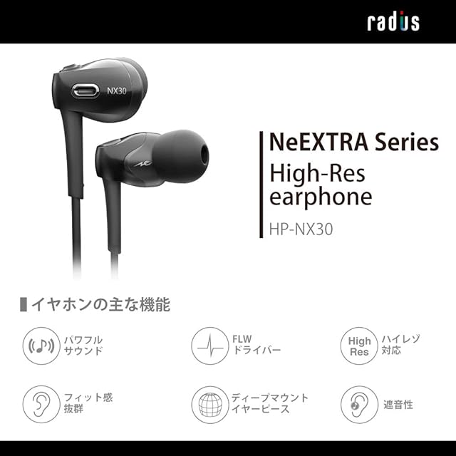 商品名:ラディウス radius HP-NX30 ハイレゾ対応イヤホン : NeEXTRAシリーズ FLW構造ドライバー搭載 ハイレゾ 有線 カナル型 イヤフォン HP-NX30K (ブラック)