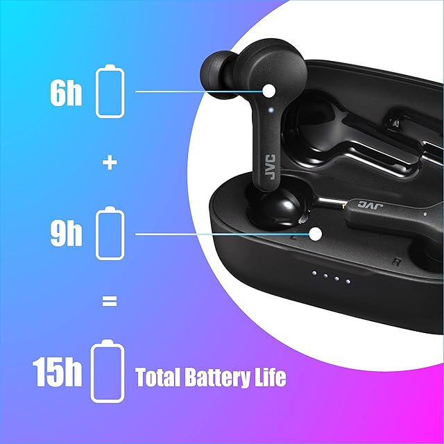 本体のみで約6時間※の連続再生と充電ケースでのフル充電(約6時間※×1.5回)により合計約15時間※の長時間再生が可能。また、15分の充電で約1時間※の連続再生が可能なクイック充電にも対応しています。※:使用条件により変わります。