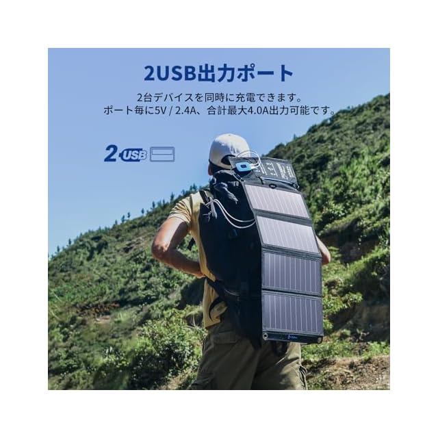 ✅【2 USB ポート】スマホとiPadなどのタブレットを二台同時に充電できます。ポート毎に5V / 2.4Aまで出力可能です。理論値では、2ポートを合計最大4.0A出力可能です(日光によって充電量は左右されます)。※パソコンと超低消費電力の製品(スマートウォッチ・ワイヤレスヘッドセットなど)に充電できません。