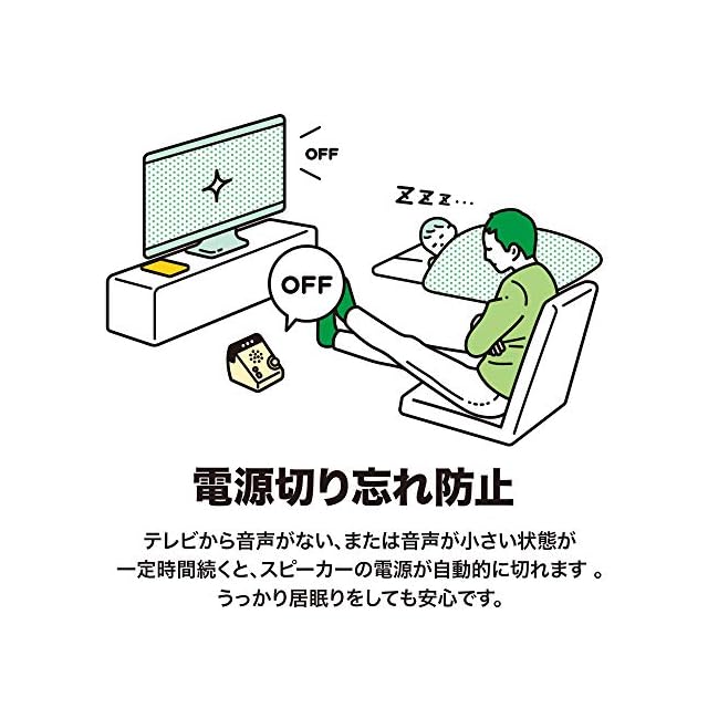 【 自動電源オフ機能 】テレビから音声がない、または音声が小さい状態が一定時間続くと、スピーカーの電源が自動的に切れます。