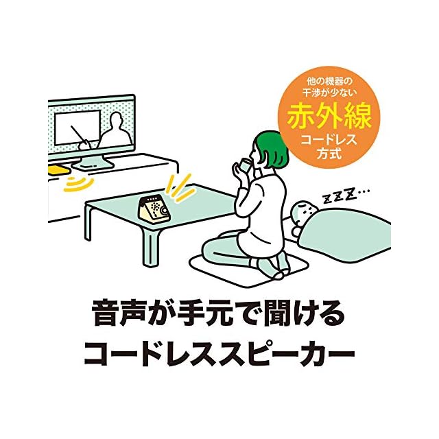 【 ワイヤレス 】他の機器との干渉や音声遅延の少ない赤外線方式を採用し、最大約7mのリスニングエリアでテレビの音声をお楽しみいただけます。