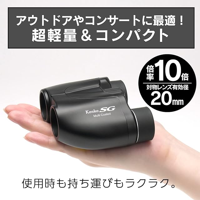 商品名:ケンコー(Kenko) コンパクト双眼鏡 SG-Mコンパクト 10×20 10倍 20口径 ポロプリズム式 マルチコーティング 超軽量149g コンサート・ライブ・アウトドア用 ブラック 012840