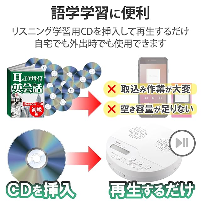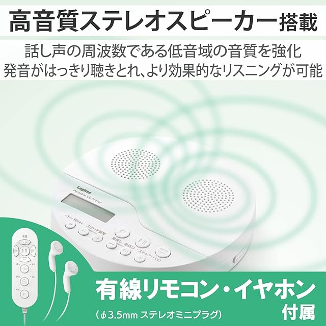 商品名:ロジテック ポータブルCDプレーヤー リモコン付属 有線対応 スピーカー機能付 ホワイト LCP-PAPS02WH