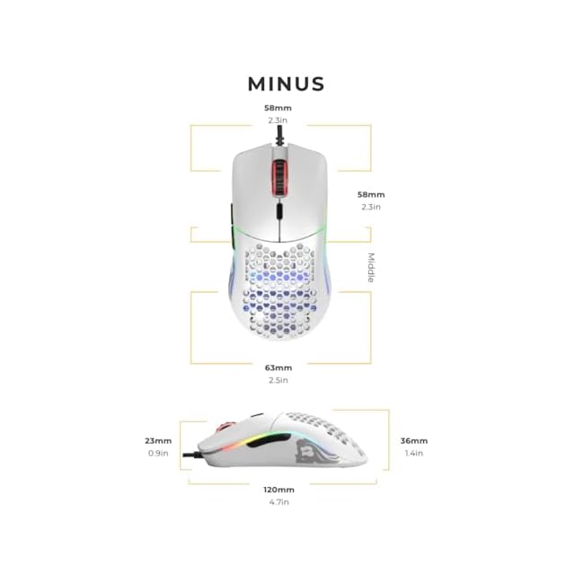 サイズとスタイル: ゲーミング用両手対応軽量マウス。スピード、コントロール、快適性を追求し、最適な重量と高い耐久性を実現。Model O- (Minus) は中~小さな手に最適。