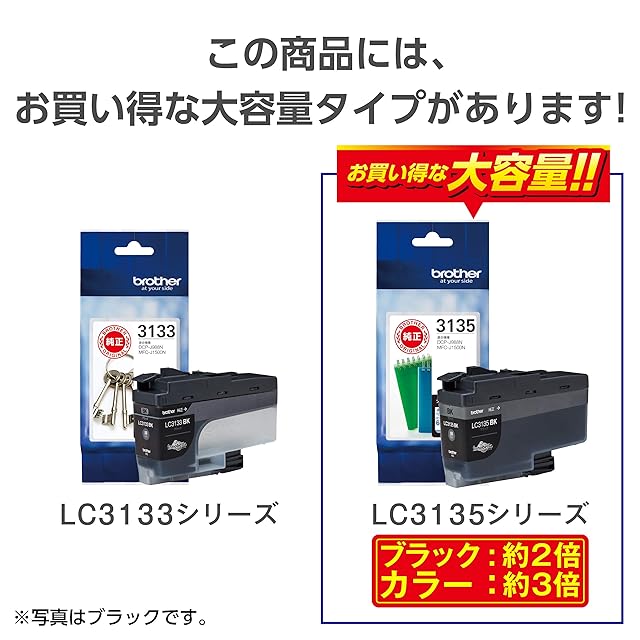 商品名:【brother純正】インクカートリッジブラック(大容量) LC3133BK 対応型番:DCP-J988N、MFC-J1500N、MFC-J1605DN 他