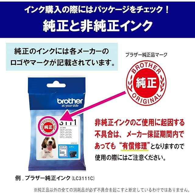 非純正インクをお使いになりますと製品本体の性能を十分に発揮できないだけでなく製品本体を損傷させる可能性がありますのでご注意ください。