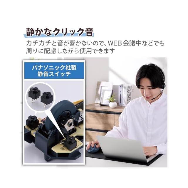 左右ボタンには、パナソニック株式会社が開発した静音スイッチを採用。クリック感と耐久性を損なわず、高い静音性を実現しました。