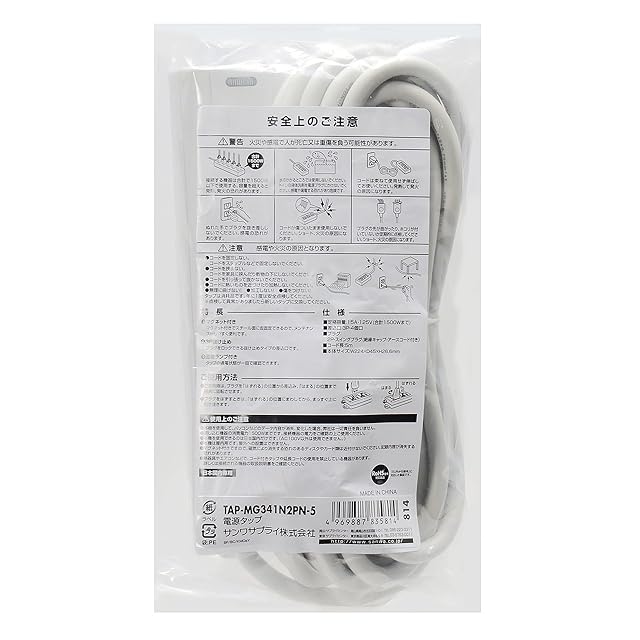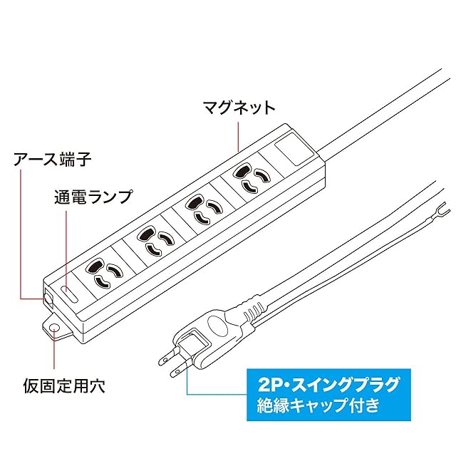 商品名:サンワサプライ(Sanwa Supply) 電源タップ 3P・4個口 5m TAP-MG341N2PN-5