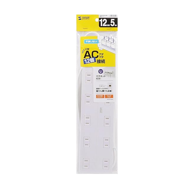 商品名:サンワサプライ(Sanwa Supply) 電源タップ 12個口・2P・5m 裏面マグネット ホコリ防止シャッター スイングプラグ ホワイト TAP-2312-5W