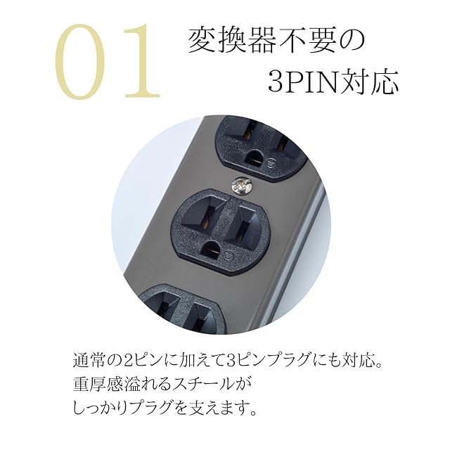 人気のスチールタップにスリムタイプの6個口モデルが新登場!<br> 3ピンプラグも利用可能でおしゃれなアメリカンデザインのスチールタップ。<br>コードの長さは2mです。鉄製のためとても丈夫にできており足で踏んでも壊れないぐらいの耐久があります。<br> 色(カラー)は、ダークグレー。シンプルで無骨な感じがインテリアにハマり、インダストリアルな味わいをお楽しみいただけます。<br> お部屋の中でインテリアとして利用も楽しめます。<br> ※海外では使用できません。