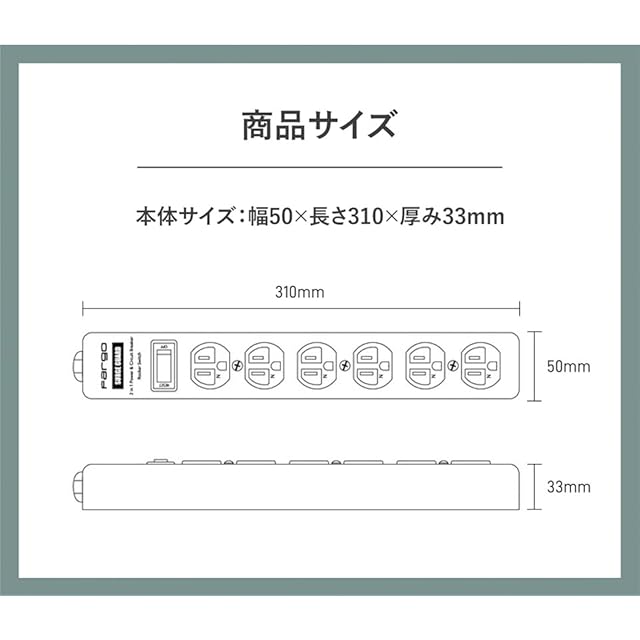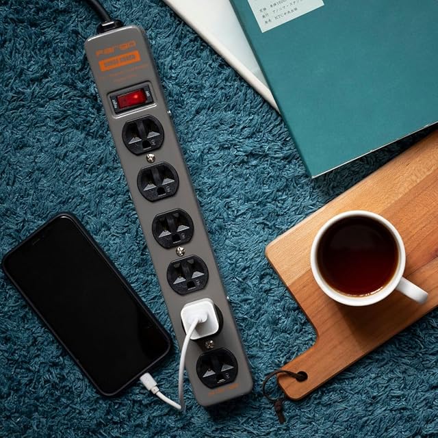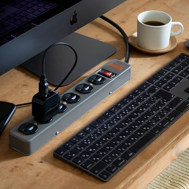 商品名:Fargo STEEL TAP 電源タップ スチール製 3ピン対応 アース線付き コード 壁掛け 固定 (ダークグレー, 6個口4m)