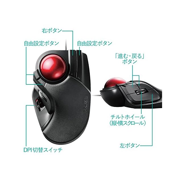 商品名:エレコム USB マウス 有線 トラックボール 大玉 8ボタン チルト機能 ブラック M-HT1URXBK