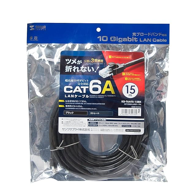 商品名:サンワサプライ カテゴリ6A LANケーブル(ブラック・15m) KB-T6ATS-15BK