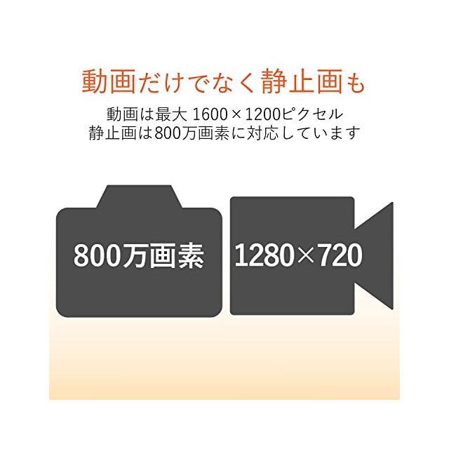 静止画 記録画素数:最大約800万画素(ソフトウェア処理により対応)、動画 記録画素数:最大1600×1200ピクセル