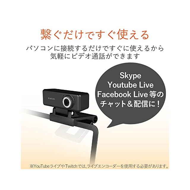商品名:エレコム WEBカメラ UCAM-C520FEBK 200万画素 HD 720p 高精細ガラスレンズ マイク内蔵 片耳イヤホン付 ケーブル長1.5m ブラック