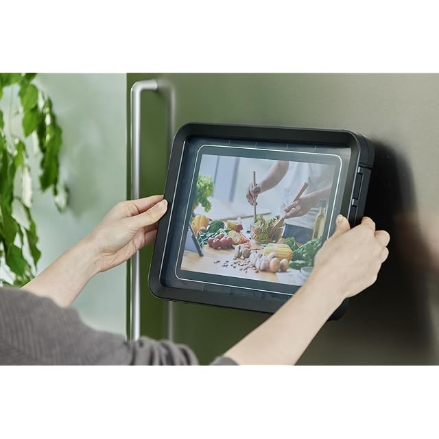 商品名:リズム(RHYTHM) タブレット 防水ケース 【 日本製 】 防水 IPX7 相当 お風呂 OK 角度調節可能な収納 スタンド ・ 壁掛け 背面 マグネット 黒色 23.7x32.2x3.2cm Made in Japan「MAGCASE T」 9YY019RH02