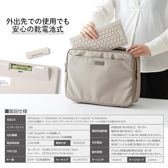 薄型で軽量。持ち運びにも便利 ・キータイプは打感が軽いパンタグラフ方式