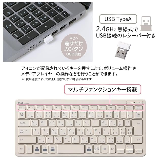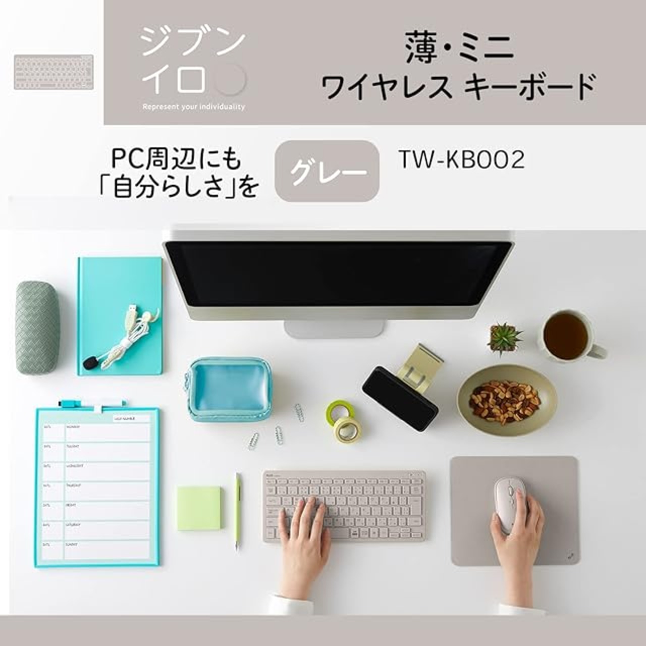 商品名:PLUS キーボード ジブンイロ 薄・ミニ ワイヤレスキーボード グレー TW-KB002 428-851