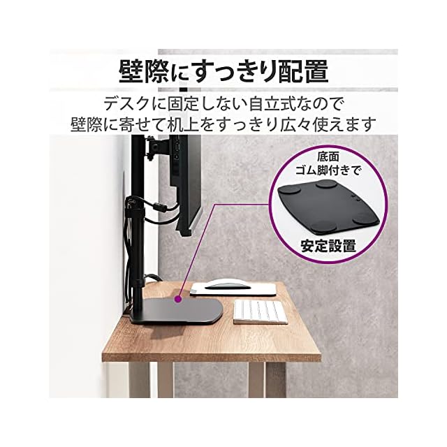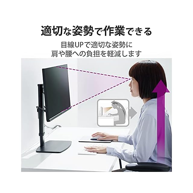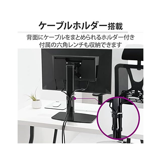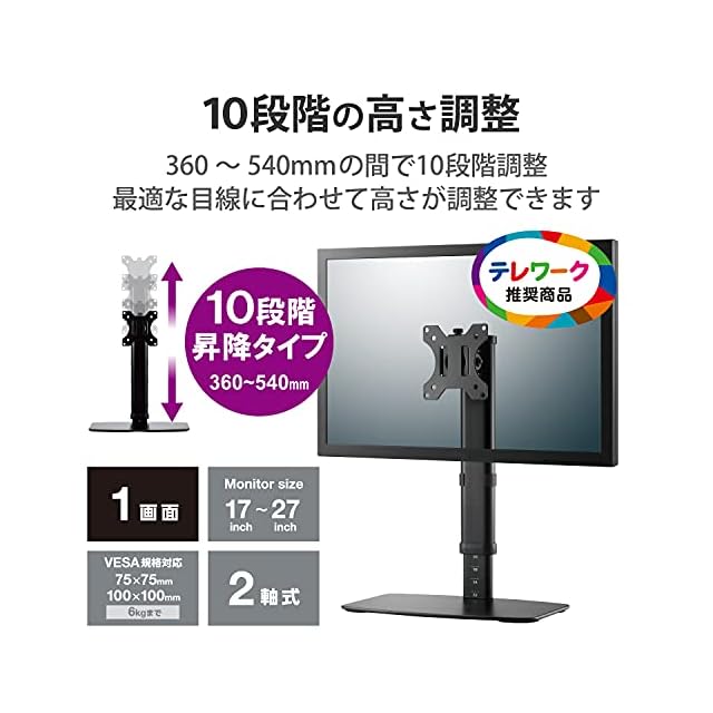 エレコム モニタースタンド モニター台 17~27インチ 対応 高さ調整 10段階 昇降タイプ 360° 調整可能 耐荷重 6kg ケーブルホルダー付 ブラック DPA-VL01BK | LIS MART