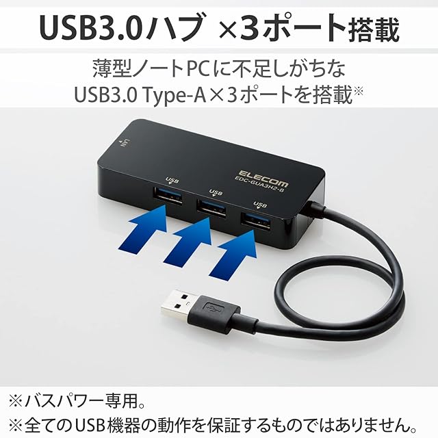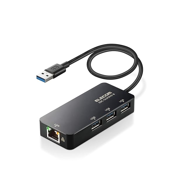 エレコム 有線LANアダプター USB3.0 USB-A USB→RJ45 変換アダプター ギガビット USBハブ (USB-A×3ポート) 【Windows 11/10/8.1、macOS 12/11/10.15対応】 ブラック EDC-GUA3H2-B | LIS MART