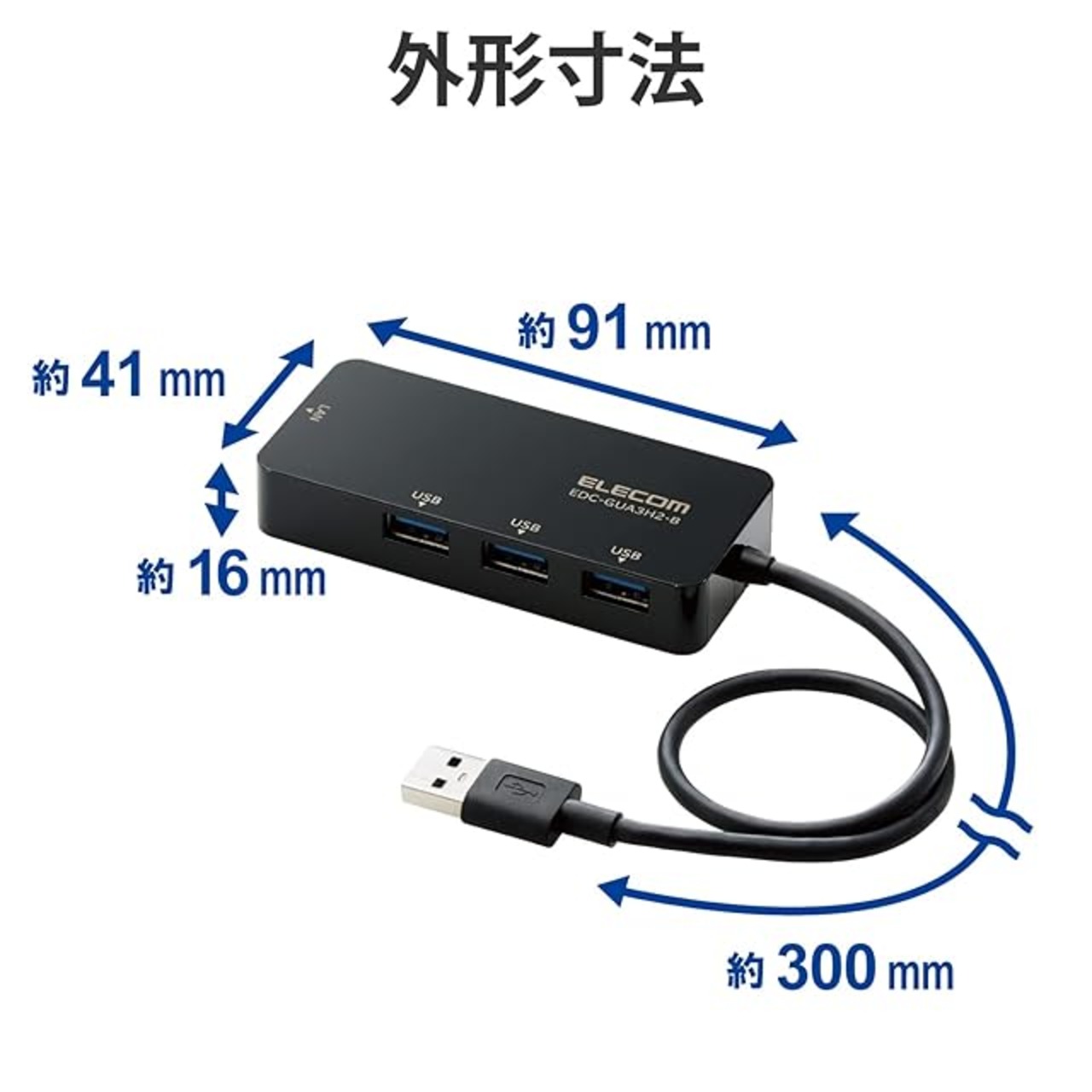 USBハブ部は、高速転送可能なUSB3.0ポート(USB-A)を3ポート搭載しています。
