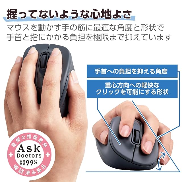 商品名:エレコム マウス ワイヤレスマウス 静音 Bluetooth EX-G 2023年モデル 左手用 Lサイズ 5ボタン マルチペアリング 「AskDoctors評価サービス」認証 抗菌 ブラック M-XGL31BBSKBK