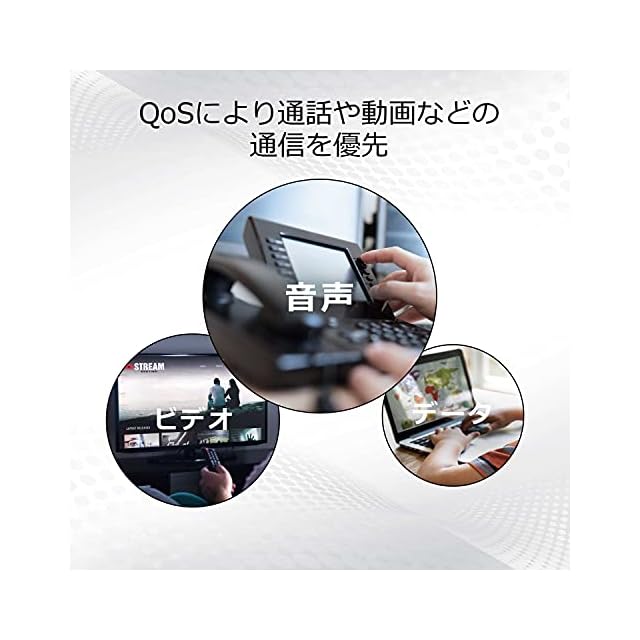 VLAN(ポート、タグ)、QoS(802.1p, DSCP, ポート)、マルチキャスト(IGMPスヌーピングv1/2/3)。