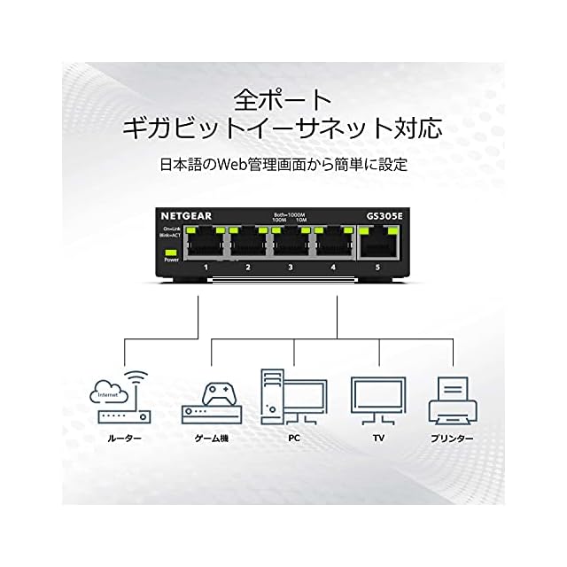 商品名:【正規品】 ネットギア NETGEAR スイッチングハブ 5ポート 1G 金属筐体 静音ファンレス メーカー5年 アンマネージプラス GS305E-100JPS