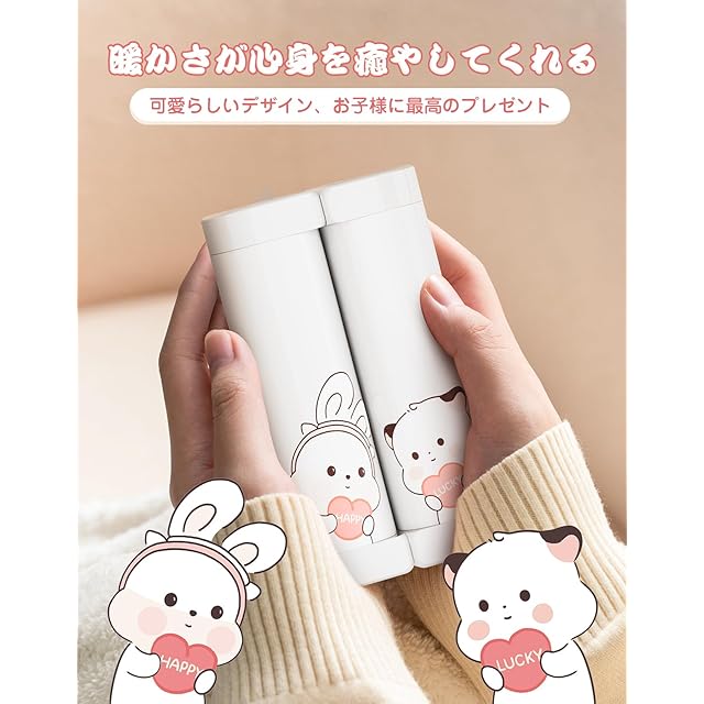 「2024年革新版」分離式充電式カイロ √40~55℃三段階温度調節 通勤・通学時は高めの55℃、机に座って作業するときは低めの45℃に設定するなど、常に快適な温度であたたまれます。冬の旅行に持って行けば、ホテルから観光先まで、場所にあわせて温度調節できて便利です。 √急速発熱 熱伝導率に優れた素材を採用し、電源入れたらすぐ暖かくなり、寒い時期に待つ時間なし! √恒温発熱 最新のMCUチップとサーモスタッドが搭載され、急速発熱を実現する同時に恒温機能もできて、一定の温度になると過度な温度の上昇あるいは温度低下を防いでくれるため、安心して使うことができます。 √360°全方位発熱 他社の両面だけ発熱のカイロと違い、HAGOOGI電気カイロは「円筒型」の設計になっていることによって、360°全方向発熱になって、この冬いつでもポカポカ~ √モバイルバッテリー機能 カイロ+モバイルバッテリーの1台2役を果たしてくれ、10,000mahと大容量で、バッテリーとしてiPhoneやワイヤレスイヤホンなどを2台同時に充電が可能です。 √持ち運び便利 わずか119g/個と軽量で、女性やお子様もストレスなく握りやすく、ポケットに入れて手軽に持ち運びます。 √エコと節約 繰り返し使えてゴミが出ないとってもエコな充電式カイロで、環境に優しく、お客様の財布にもやさしい! √万全の保護機能 過充電保護・過熱保護・短路保護・漏電防止・爆発防止・PSE 認証済 √ギフト・プレゼントとして大活躍!本体には高級感あふれる9色から選択でき、シンプルかつおしゃれな見た目だから、プレゼントにもぴったりです。