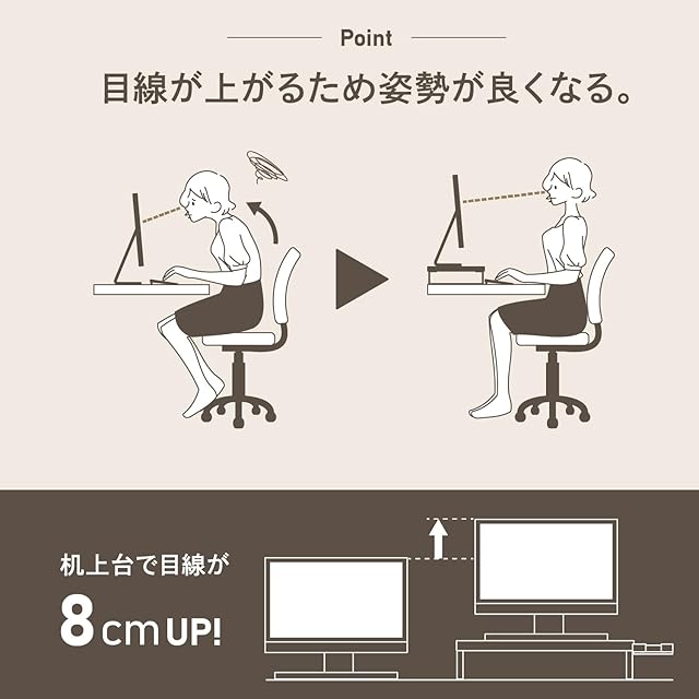 商品名:リヒトラブ パソコン台 モニター台 木目調 MDF 机上台 スリム サイドトレー付 ブラウン 幅58×奥行20×高さ8cm 耐荷重15kg A8022-9