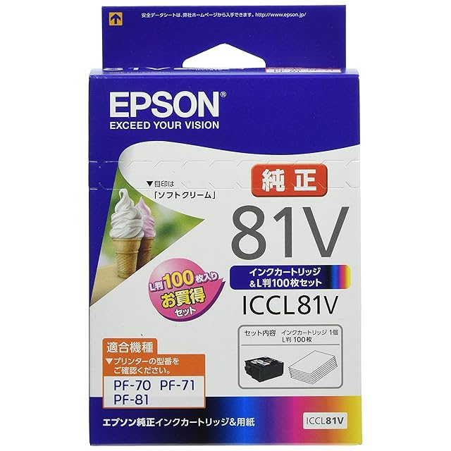 商品名:エプソン 純正 インクカートリッジ ソフトクリーム ICCL81V カラー4色一体型 写真用紙L判100枚セット