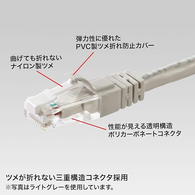 曲げても折れないナイロン製ツメと弾力性に優れたPVC製ツメ折れ防止カバー、性能が見える透明構造ポリカーボネートコネクタで、信頼の三重構造です。