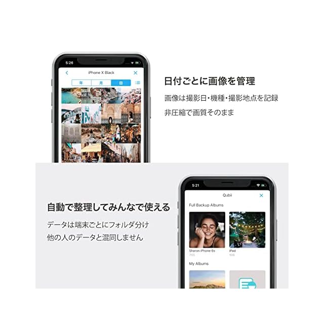 【Qubii Proがあれば写真取り放題】寝る前にスマホ充電するだけでiPhoneの写真や動画を自動バックアップ!Qubiiがあれば、iPhoneの容量不足には困らず、写真を気兼ねなく取り放題!使いやすくて高速転送。簡単操作で手軽にiPhoneの写真をパソコンにデータ移行することも可能。