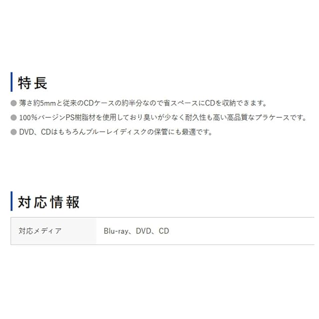 薄さ約5mmと従来のCDケースの約半分なので省スペースにCDを収納できます。