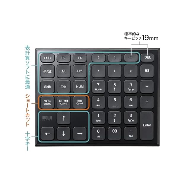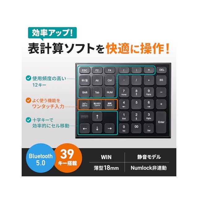 商品名:サンワサプライ 表計算Bluetoothテンキー NT-BT27BK