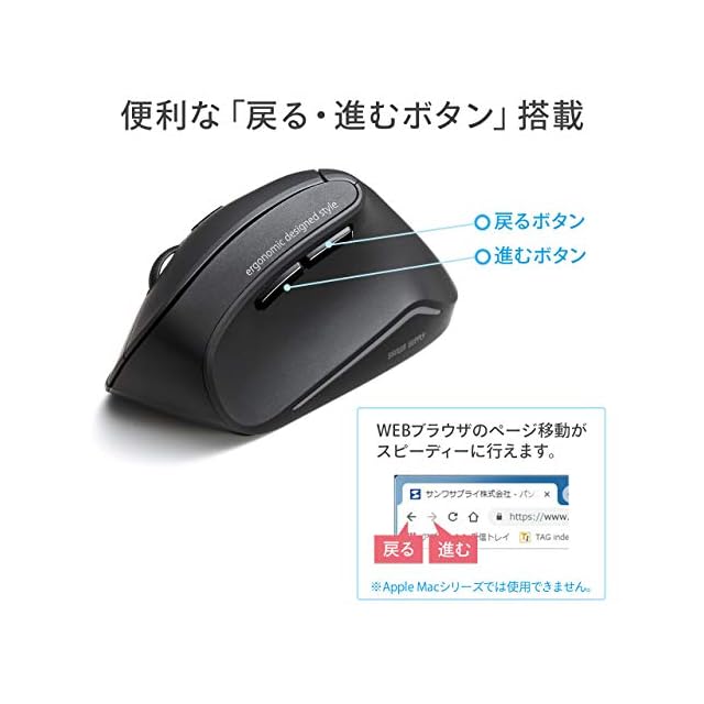 サイドに戻る・進むボタンを搭載しており、Webブラウザの操作がスピーディーに行えます。 ※Apple Macシリーズではご使用できません。